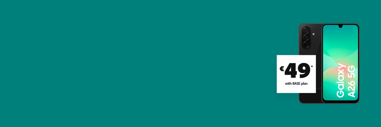 Discount on smartphones valid 12/08/2025 through 06/10/2025 with a BASE monthly plan for existing BASE customers and/or new BASE customers (who were not postpaid customers in the 3 months preceding the acceptance of the offer), while stocks last.