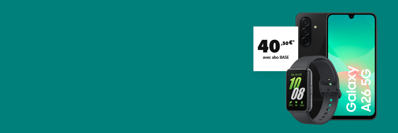 À l’achat d’un Samsung Galaxy A26, vous recevez via Samsung la Galaxy Fit 3 (valeur €59). Cette promotion est valable du 03/11/2025 au 05/01/2026 (date d’achat) et dans la limite des stocks disponibles. Vous pouvez participer une seule fois par produit acheté et au maximum trois fois par foyer. Cette promotion est uniquement valable pour les participants âgés de 18 ans et plus. Demandez votre produit au plus tard le 05/03/2026 sur https://promotions.my-samsung.com/be/find