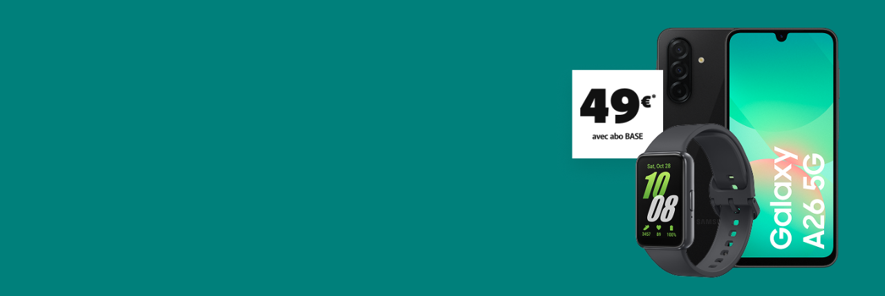 À l’achat d’un Samsung Galaxy A26, vous recevez via Samsung la Galaxy Fit 3 (valeur €59). Cette promotion est valable du 03/11/2025 au 05/01/2026 (date d’achat) et dans la limite des stocks disponibles. Vous pouvez participer une seule fois par produit acheté et au maximum trois fois par foyer. Cette promotion est uniquement valable pour les participants âgés de 18 ans et plus. Demandez votre produit au plus tard le 05/03/2026 sur https://promotions.my-samsung.com/be/find